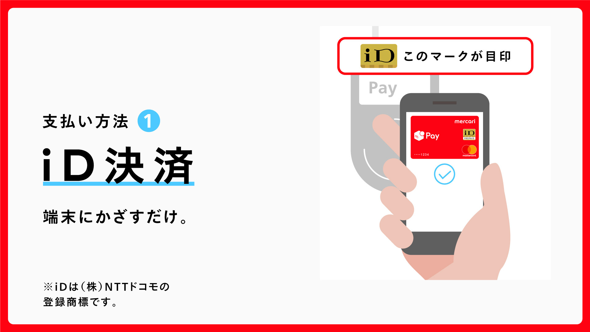 1つ目の支払い方法は「iD決済」。「iDマーク」があるお店でご利用いただくことができます。